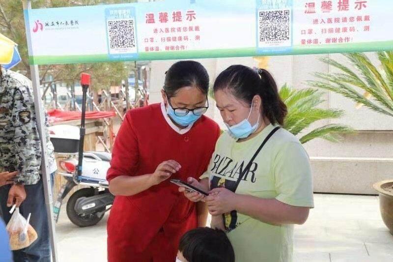 每天早上8点左右,都是医院进出人员的高峰期,等待进院的患者及家属,医院的工作人员,来医院办事的群众,人流量明显增加。由于市医院大门内外地方狭小,很容易造成街道交通拥堵,延安市人民医院组织力量积极应对,一丝不苟引导群众有序出入。车辆进入须排队走车辆通道,车上人员也必须扫码测量体温。“人再多也不能乱,不出示手机绿码不能进,不戴好口罩不能进,体温不正常须登记走发热患者通道,出口只能出不能进。”一位身穿制服的保安告诉记者,“医院领导非常重视疫情防控工作,管理部门也经常来门卫处检查疫情防控情况。”