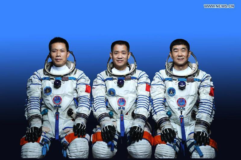 神舟十二号飞行任务乘组:聂海胜(中)、刘伯明(右)、汤洪波(左)。新华