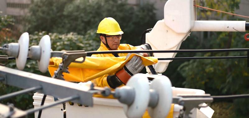 国家电网陕西电力张思德(电靓古城)共产党员服务队队员开展带电作业