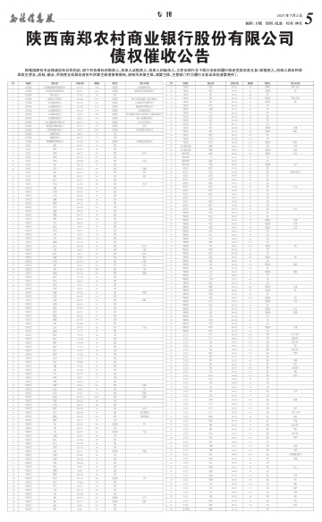 陕西南郑农村商业银行股份有限公司债权催收公告