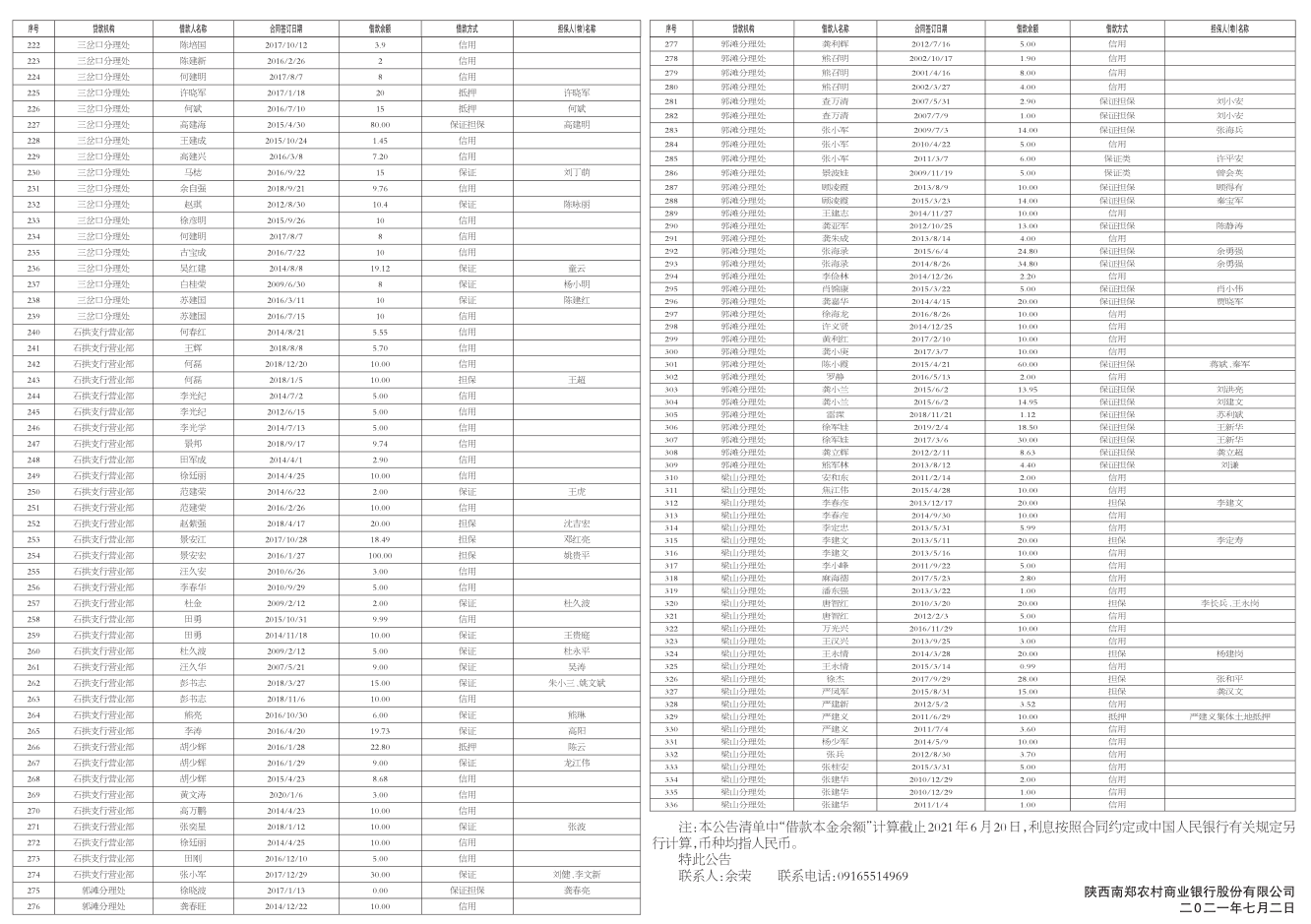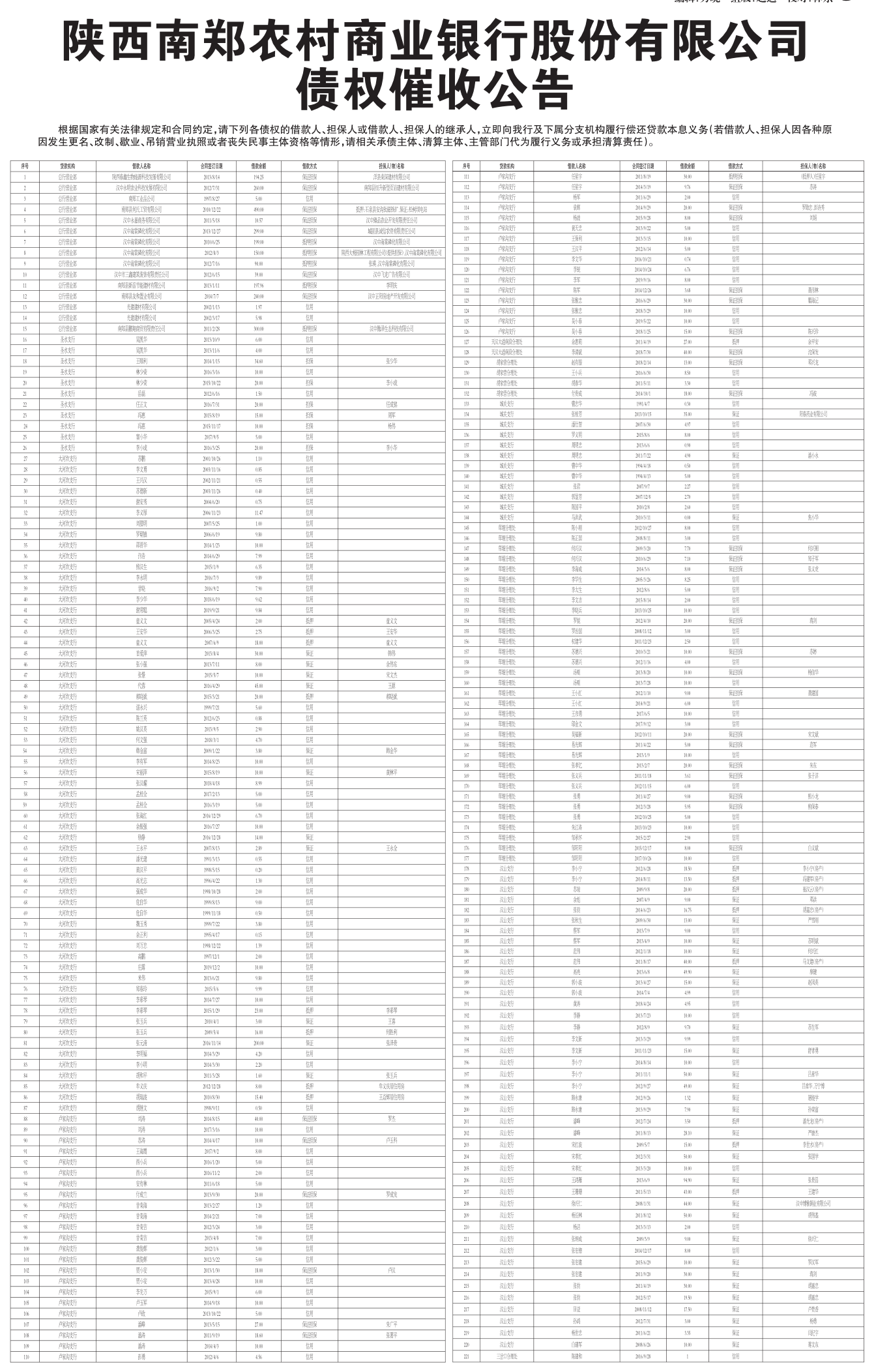陕西南郑农村商业银行股份有限公司债权催收公告