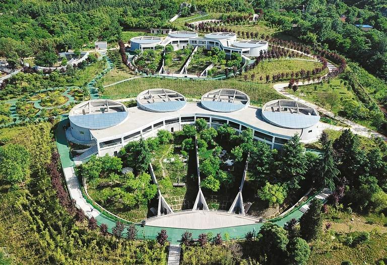 秦岭四宝科学公园内形如熊猫掌印的熊猫馆