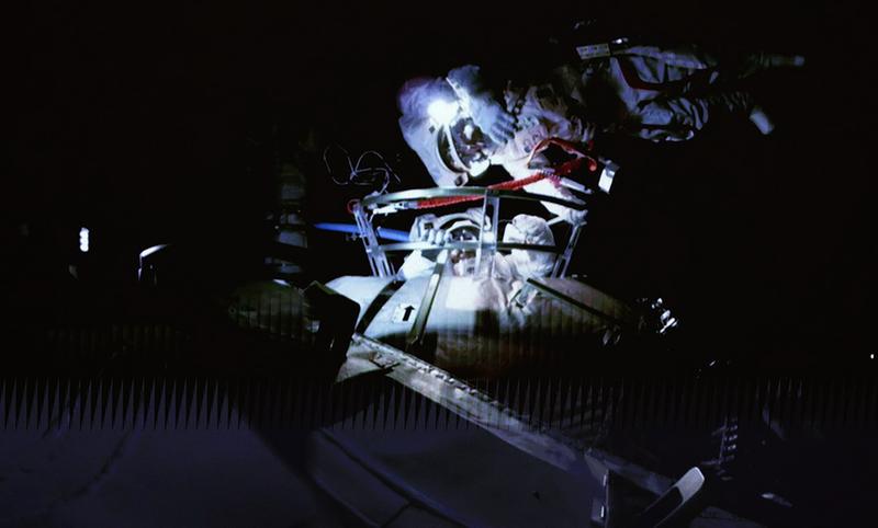 ▲7月4日,在北京航天飞行控制中心大屏拍摄的航天员刘伯明在舱外工作场面。新华社记者金立旺摄