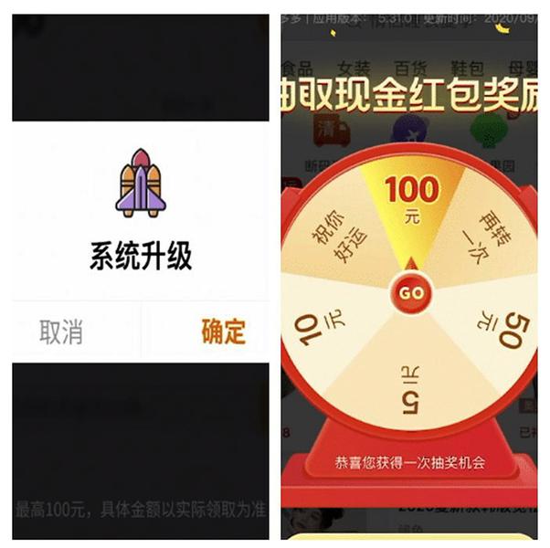 此外,一些开屏广告还进行伪装,变身成微信零钱提现、微信红包、手机网络设置、未读消息、版本更新、无网络服务提示等消息提醒的模样,诱骗用户点击。有时打开一款App,如果使用者对这些“提醒”信以为真,按照图片中的暗示点击跳过或取消,不仅跳不过广告,还会被“带着”跳转到了其他广告页面上。