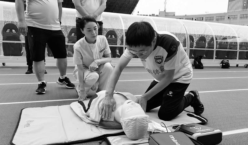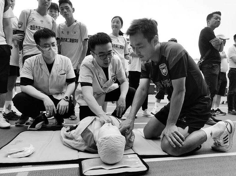 7月3日,在陕西长安竞技足球俱乐部,西安市中心医院“心动”公益计划第二十二场如期举行。由该院医护人员组成的心肺复苏专家团队走进“圣朱雀”,为陕西自己的球队贡献一份力量。