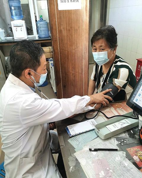 杨百利医生在为病人量血压