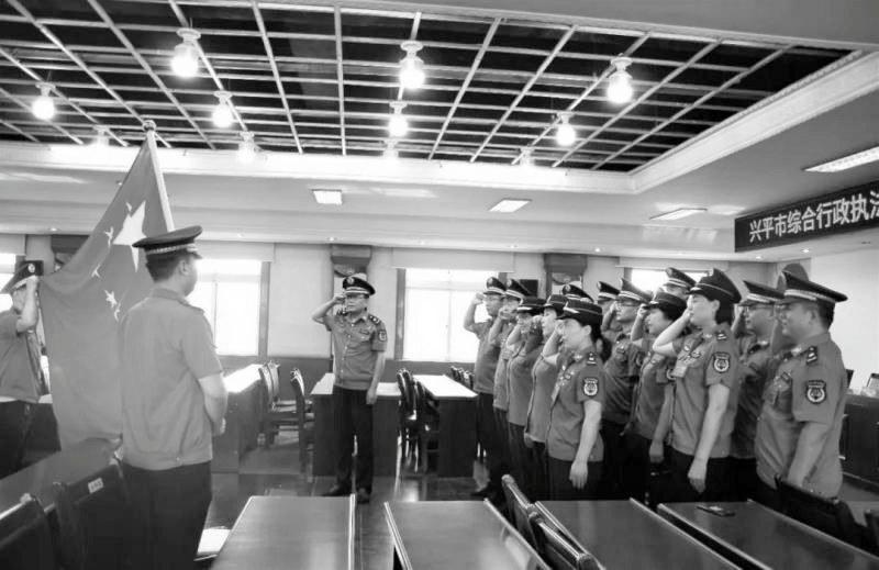 8月4日下午,兴平市综合行政执法局五楼会议室传出了庄严的声音,这里正在举行陕西省行政执法证领取暨宣誓仪式。在现场,该局领导对大家提出,以人为本,服务于民;爱岗敬业,忠于职守;严格执法,公平公正;仪表整洁,举止文明;遵纪守法,清正廉洁五点要求。
