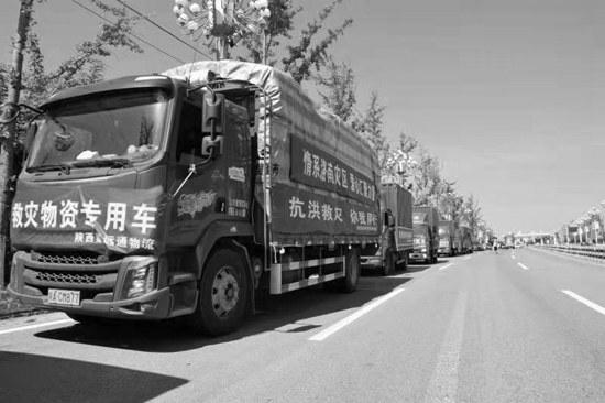 7月29日,陕西省工商联党组成员、专职副主席许孝军与省政协常委、陕西省川渝商会会长、亿杰控股集团董事长陈高志等企业家亲自带队赶往洛南灾区,捐赠14辆车的救灾物资。