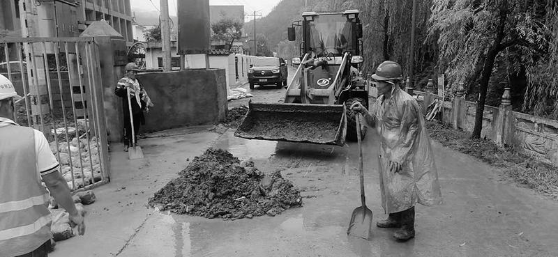 日前,寺坪镇普降大雨,丹凤寺坪村降雨量达到109.7mm,南沟口组染坊口排水渠水量骤增,加之排水渠堵塞,河水越过河堤沿寺白公路泛滥,严重威胁寺坪敬老院、村委会及周边群众生命财产安全。危急时刻,正在辖区施工的中铁五局集团丹凤全域污水处理项目部闻讯后,项目部负责人主动带领10名工人,出动挖掘机、装载机、清运车,及时赶往现场,与寺坪镇镇村干部、群众一起参与到紧张的救灾抢险工作中,经过1小时奋战,排水渠畅通,险情解除。随后,项目部继续坚持作业,从早上6点开始一直到下午6点,共计为寺坪村清理辖区道路塌方3处18立方米,疏通河道100米,清理公共场所淤泥40立方米。