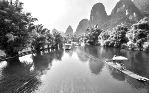 一会儿,我们超过别人,一会儿,别人又超过我们,我们在赶浪,浪又在赶我们,我们跌荡在这青山绿水间,忘记了烦热,也忘记了生活的喧嚣,满眼皆是绿意和清凉。两个年轻人,像是一对恋人,在途中停了筏子,将筏子泊到水湾处,在两个石头上坐了下来,放眼长望,像两个看客,看着自上流而下的人们,目光追随着人们好远,女的拿着一个手机,男的手中还拿着一个长镜头的相机,本来,他们也是这河道中的一道风景,现在,他们又成了看风景的人,或者,他们也很好奇,这些形形色色的人们,来自各个地方,有男的女的,有青年有少年,他们都是以什么样的形象和姿态出现在这条湍急的河道上,这才是他们好奇的,如此静静地坐而观之,一定能拍下各种不一样的镜头和特写照片,或许,这才是他们此行最大的兴趣和收获,每个人来游玩的目的不一样,他们希望获得的观感和体验也是不一样的。