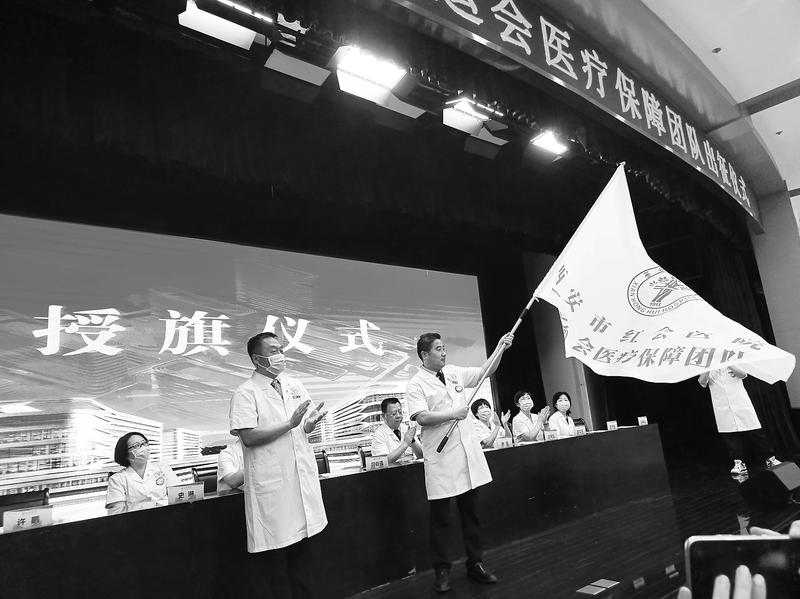 8月26日下午1点30分,西安市红会医院举行十四运会医疗保障团队出征仪式,来自医院内外骨科(含康复)、影像、检验科等多个科室的140位医护人员现场集结。