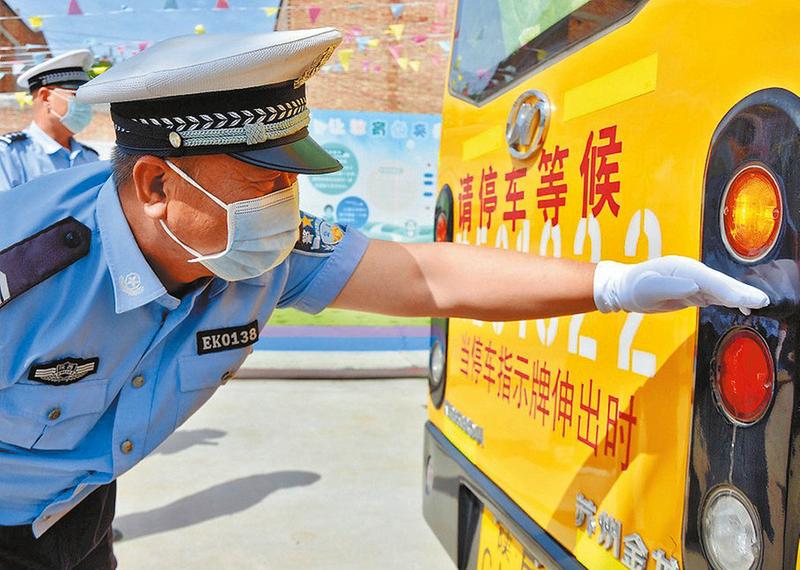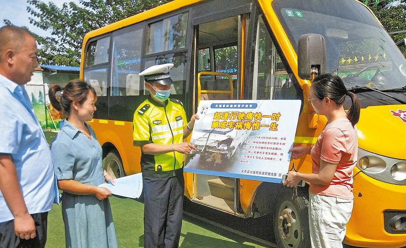 大荔县公安局交通管理大队西郊、朝邑中队在辖区幼儿园开展开学前校车安全检查及驾驶员安全知识宣传。刘静摄