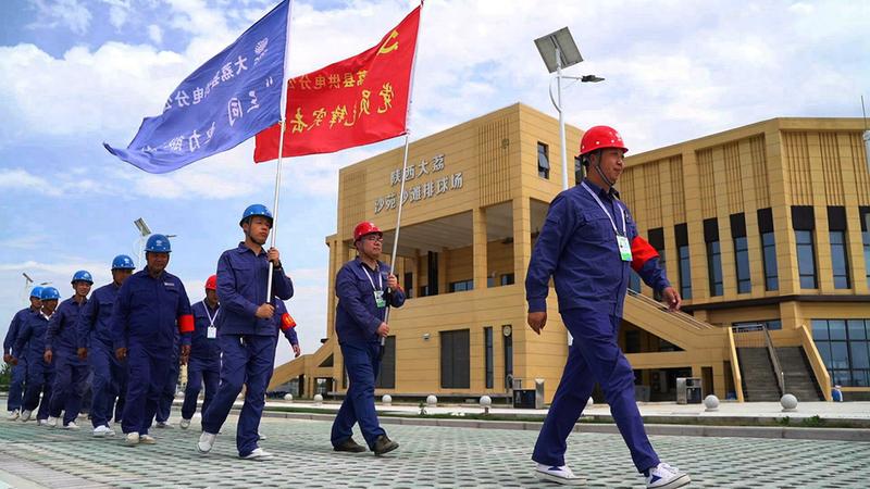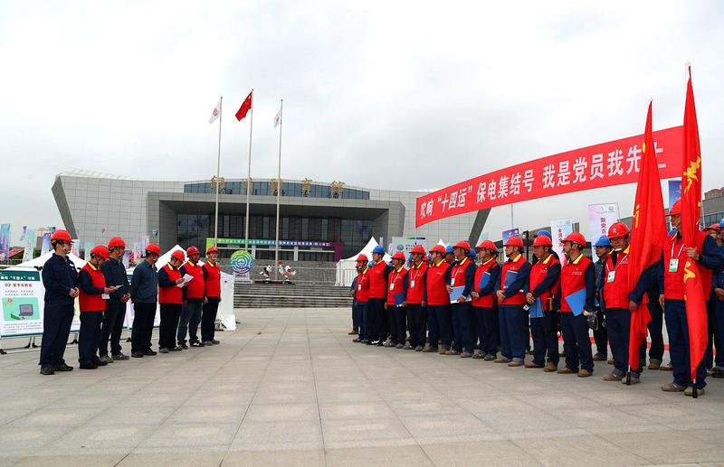 5月14日,国网铜川供电公司在铜川体育馆前举办“十四运”测试赛保电誓师大会 8月26日,国网西安供电公司输电线路运维人员曹成正在巡查“十四运”开幕式彩排保电线路,随着手机响动收到一条来自西安奥体中心保电指挥部推送的保电任务,“西安奥体中心体育场保电线路北奥1线6号杆塔出现外破告警,请迅速前往处理”。接到通知的曹成迅速赶往6号杆塔,发现附近停有一辆施工作业车。