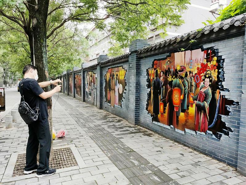 西安顺城巷建国门段的老旧围墙焕然一新,25幅3D彩绘作品组成了一幅色彩斑斓的画卷,给古城墙增添了一抹独特的文化韵味。彩绘里的人物栩栩如生,动物活灵活现,一路看去感觉自己就身处在大唐的繁华盛世中。彩绘色彩鲜亮,内容丰富,引得路人纷纷驻足拍照留念,成为了新晋“网红打卡地”。