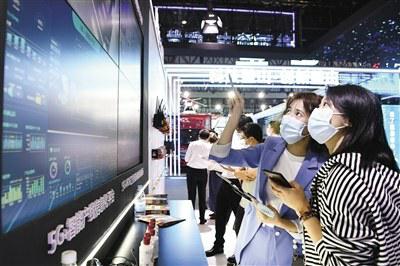 在2021智博会现场,工作人员(前左)向观众介绍“G+智能制造”的应用。“55G+智能制造”的应用。新华 传统工业生产车间里,设备陈旧落后,生产效率低下,无法满足日益增多的订单需求;工作环境恶劣,机器轰鸣,浮尘飞舞,高温高压条件下危险频发;劳动力密集,生产成本难降……