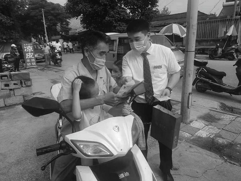 近日,秦农银行霸陵支行全员分批次在辖区的各大农贸市场、商超、村组街道,持续的开展“金融知识进万家反假货币”扫街宣传工作,辛勤与坚持,使该辖区人民的金融知识水平和防范金融风险的意识在逐步提高中。图为积极热心的工作人员为市民详细讲解宣传单上触目惊心的案例,提高市民的金融防范水平。