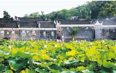 湖南省永州市新田县龙家大院古村,秋荷盛开,吸引众多游客前来打卡游玩。刘贵雄 摄