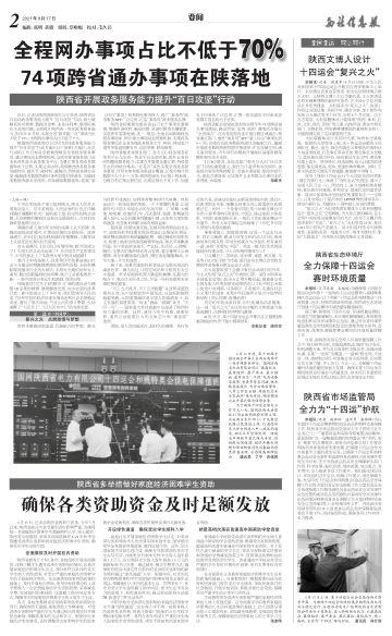 全程网办事项占比不低于70% 74项跨省通办事项在陕落地