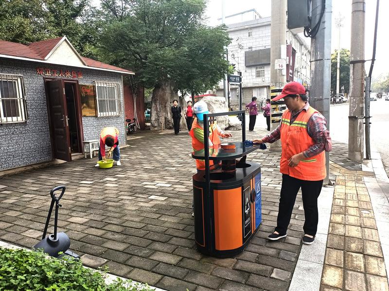 环卫工人擦洗垃圾箱 本报讯(通讯员 唐金玲)近日,临潼区城管局全体机关干部走上街头,把道路两侧人行道、绿化带区域进行全面大扫除,对垃圾箱、街头座椅、公厕、路灯杆、环卫工具箱等公共设施进行全面大擦洗,临潼区的城市面貌焕然一新。据悉,按照临潼区委、区政府安排部署,“扮靓我的城”“擦亮我的城”“点亮我的城”城市精细化活动的一部分,为全面提升临潼城市品质再添一份力。