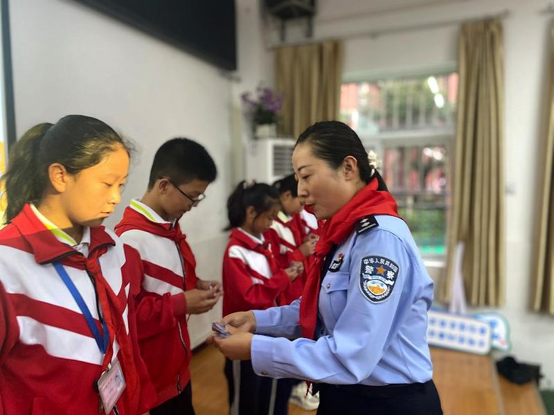 活动中,首先由宁陕小学高年级学生宣传员代表分别就“禁毒、反诈、网络安全”等校内宣传工作情况进行了展示,宁陕小学校领导向担任校外辅导员的民警们颁发了聘书。担任校外辅导员的民警向承担“禁毒、反诈、网络安全”的班集体颁发了“宣传阵地示范班”奖状。随后,民警以校外辅导员的身份,从什么是毒品、如何识别毒品、毒品的危害有哪些、青少年如何向毒品说不,什么是电信网络诈骗、常见的电信网络诈骗类型、青少年如何防范电信网络诈骗,如何保护好个人信息、如何养成健康的上网习惯等方面进行了深入浅出的讲解,为学生们上了一堂生动的“禁毒、反诈、网络安全”宣传课。