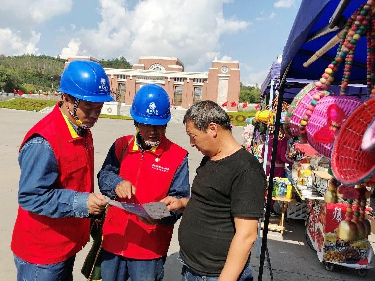 国家电网陕西电力张思德(铜川照金)共产党员服务队队员在照金红色旅游景区保障国庆期间用电可靠。