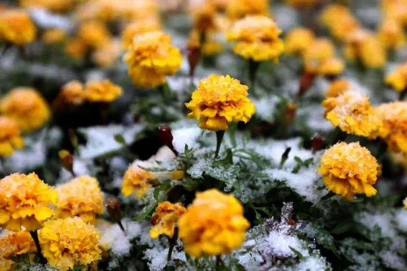 近期,受强冷空气影响,全国多地迎来2021年入秋以来的首场降雪。10月10日,陕西铜川,宜君县迎来入秋第一场雪,金黄的菊花与洁白的雪花相映相衬,构成一幅美丽的画卷。