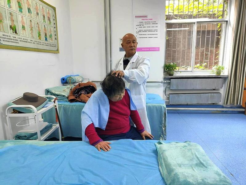 老人正在享受按摩服务
