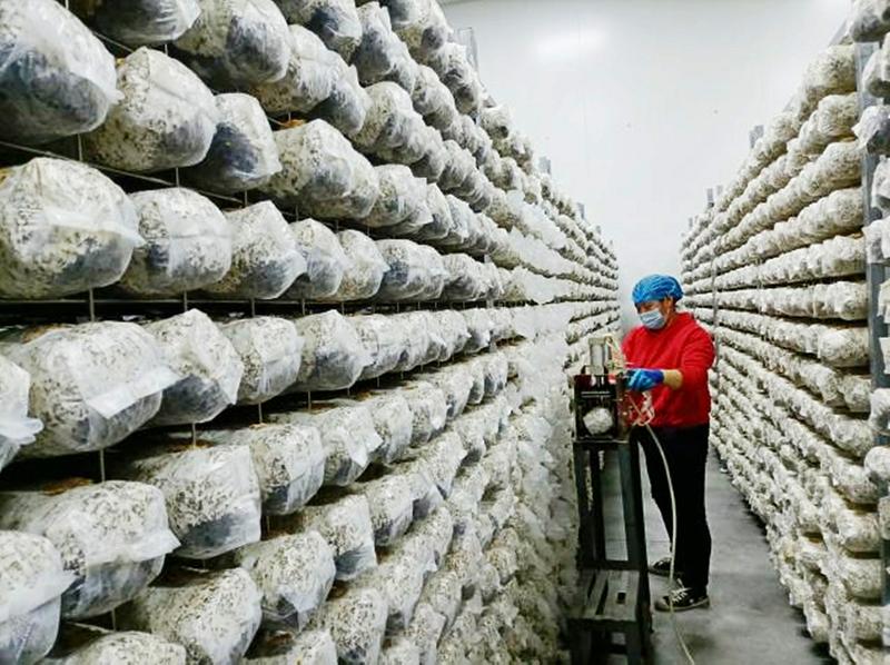 该项目占地350亩,分为东西两个区域,东区为食用菌种植基地,西区为食用菌种生产智慧工厂,包括200座食用菌种植大棚、冷储和烘干车间、科研培训、产品展示中心及7.9万㎡食用菌菌棒和菌种生产智慧工厂,实现食用菌生产拌料、装袋、灭菌、接种、刺孔全程自动化。可实现年产食用菌菌棒2000万袋,年产值超过1亿元、利润超2000万元,为100个非贫困村每村分红5万元,解决就业岗位150个,其中脱贫户43户,户均年增收4万元,为2000余户群众提供食用菌产供销一条龙服务,户均年增收2万元以上。