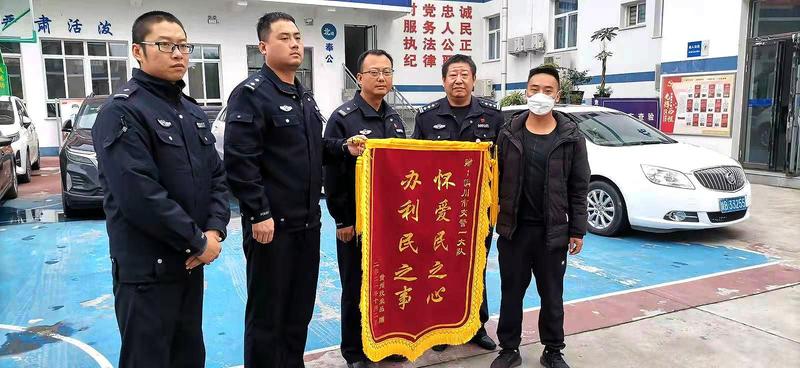 10月14日,贵州的段先生专程来到铜川,满怀谢意地将一面写有“怀爱民之心办利民之事”的锦旗,送到铜川市公安局交警支队第一大队民警手中,感谢他们在国庆节期间坚守岗位,救群众于危难之中。