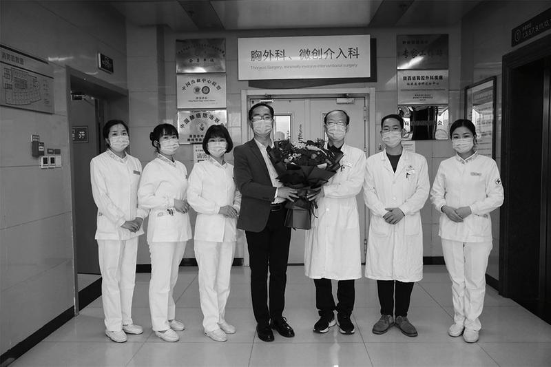 10月18日下午,41岁的宫志赟手捧鲜花,从西安专程来到商洛市中心医院胸外微创介入科,找到了科主任唐红涛(副主任赵华谦外出)。那一刻,宫志赟有些激动。他说,藏在心里16年的结,终于了了。