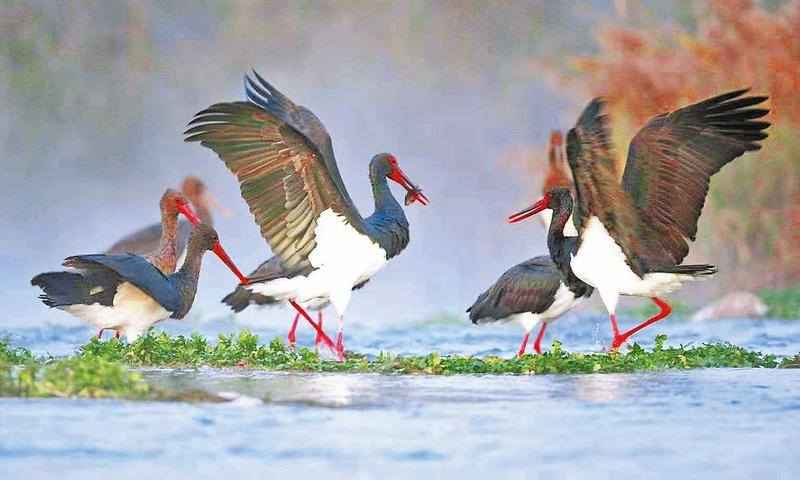 近年来,渭南市持续开展森林执法和打击破坏野生动物资源违法犯罪等专项行动,多次开展湿地保护区全域排查和集中整治,全市湿地生态环境越来越好,每年吸引大量的迁徙越冬鸟类来栖息越冬,其中有黑鹳、大鸨、灰鹤等国家重点保护鸟类达20余种。