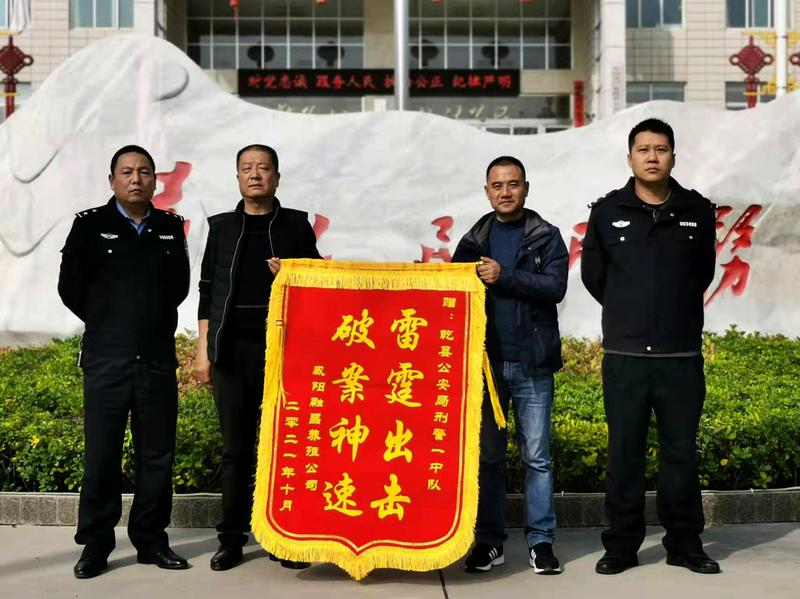 10月28日,乾县公安局峰阳派出所院内锣鼓喧天,峰阳镇某养殖公司负责人手捧锦旗、感谢信走进院内,对峰阳派出所、刑警一中队快速侦破非法狩猎案,为其挽回经济损失表示衷心感谢。