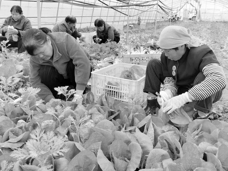 在芹兴绿色速生叶菜基地,一棚棚蔬菜长势喜人,几十名群众正在收获奶油白菜和芹菜。基地负责人王苗鹏告诉记者,目前,他们种植的130亩大棚蔬菜已经到了采收的季节,每天可以向西安、咸阳市场供应10000斤新鲜绿叶蔬菜。