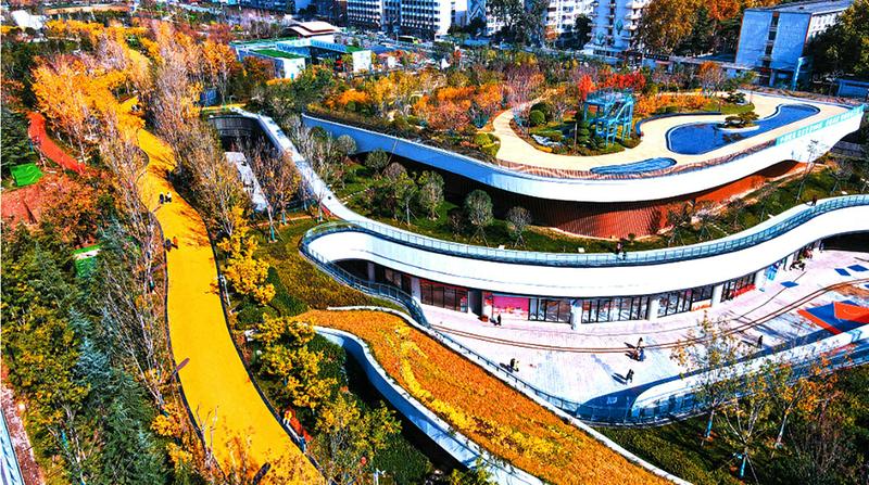11月8日,古城西安天气晴朗。在暖暖的阳光映照下,幸福林带因其独特的建筑风格呈现出颇具现代感的视觉效果。