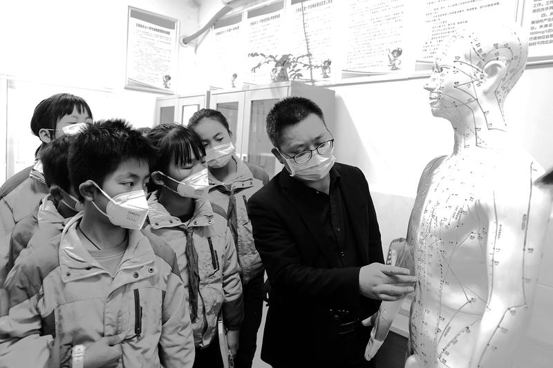 在校医务室,同学们对医院捐赠的标准针灸穴位模型感到十分好奇。医院科教科主任指着中脘穴,向同学们介绍不同位置的穴位作用也不同,并现场为大家示范,如果食欲不振、不想吃饭,就可以自己按摩中脘穴,能起到健脾和胃的作用,方法简单易学,同学们受益匪浅,意犹未尽。不少同学在活动后还加入到中医学生社团中,后期将分批次组织学生到中药房、针灸科、名中医工作室参观。