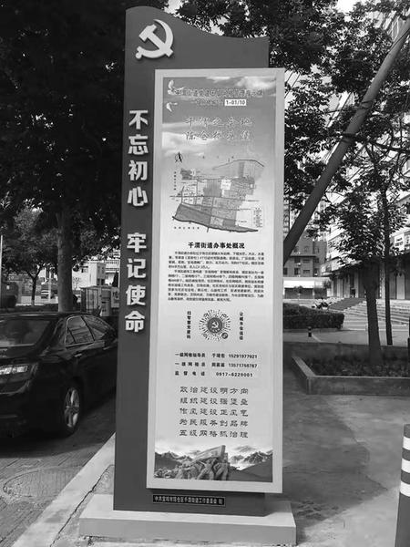 为增强城市门户意识,在城市主干道和进入千渭辖区的路段,如陈仓大道、南环路、建国路、河堤路的东西两端分别设计安装了代表千渭城市形象的一级网格指示牌10个,以党旗为造型,以“不忘初心、牢记使命,党建引领、协同发展”为主题,把街道概况、党建目标、文明创建、城市规划示意图、群众常用电话及“千渭党建”二维码公示在正反两面,在便民服务版块还能查询超过40项办事流程和资料清单,让群众通过扫码就能进入党建管理程序,方便群众网上浏览、查询信息、学习交流、留言互动,居民群众可随时与网格区域内的网格员微信和电话联系,线上线下办理相关事务,极大的方便了辖区居民生产生活。截止目前,已设计安装一级网格批示牌10个,二至五级网格批示片共计650个,实现了村组社区、路段、小区、楼栋全覆盖。