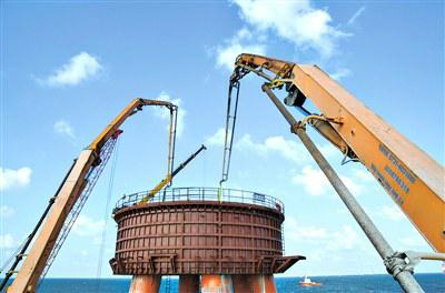 中交三航局华能苍南4号海上风电项目首个机位承台浇筑。