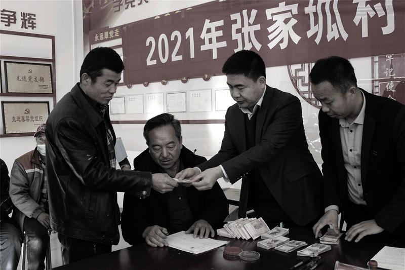 11月26日,栏杆堡镇张家坬村委会里人声鼎沸,热闹非凡。这天是张家坬村股份经济合作社第四次分红的日子,为全村1688名群众发放分红资金398598元,分红按照人口股和土地股配比分红。