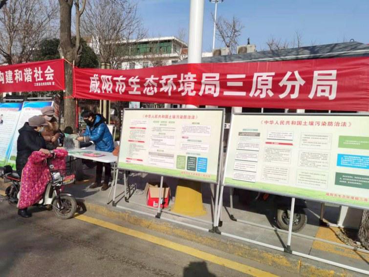 活动现场,重点宣传了推动咸阳高质量发展、社会治理现代化密切相关的法律法规。该局根据工作实际,组织人员上街通过悬挂横幅、摆放宣传展板,发放《中华人民共和国土壤防治法》《咸阳市大气污染防治条例》《水资源保护普法宣传册》读本等多种形式进行宣传,现场讲解相关的法律法规知识,与群众“零距离”互动。