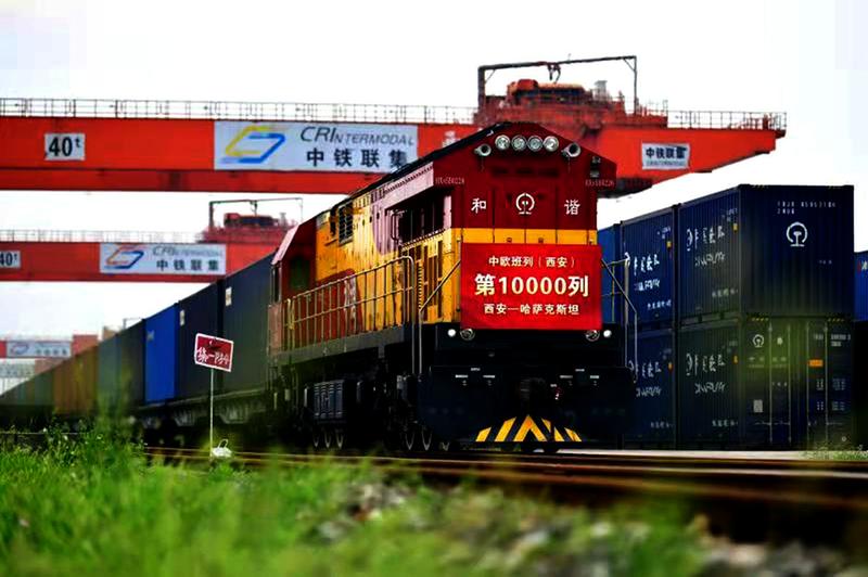 2021年8月11日上午9时30分,满载着布料、载客电梯、暖气片等50车货物的X9041次中欧班列(西安),从西安局集团公司西安国际港站开出,一路向西驶向哈萨克斯坦的阿拉木图,这是陕西累计开行的第10000列中欧班列。
