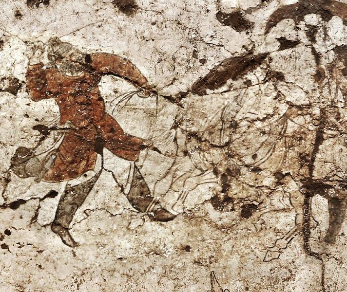 唐康善达墓,据墓志记载康善达任咸阳监,家住原州(今宁夏固原),是初唐时代的马政官员。康父亦任牧监,家资饶富,“谷量牛马,山藏丹宝”,很可能是原州粟特人。墓道壁画所绘的驯马、牵驼者皆为胡人形象,或许与墓主人的族属和生前生活经历有关。