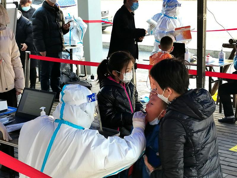 12月21日10点多,在西安市新城区自强路街道一临时核酸检测点,喇叭里循环播放着核酸检测注意事项。因近期西安疫情传播持续加剧,新冠疫情防控态势异常严峻,来做核酸检测的人也不断增多。连日来,西安市市民积极响应号召,在工作人员的引导下积极参与核酸检测。