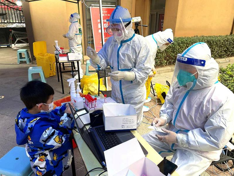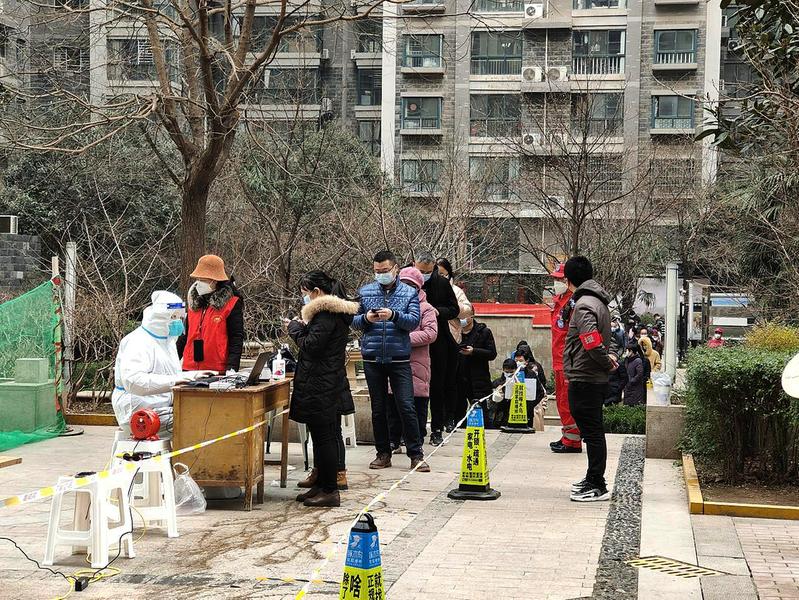 当天早上8时许,未央区圣地亚哥小区已经开始按楼号分区域做核酸检测。本报记者 王媛瑞 摄