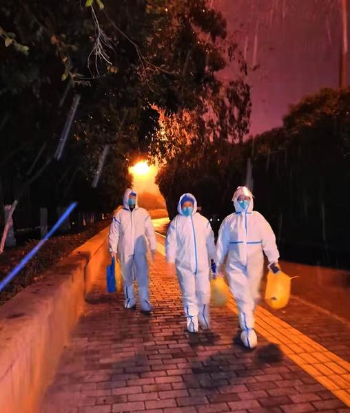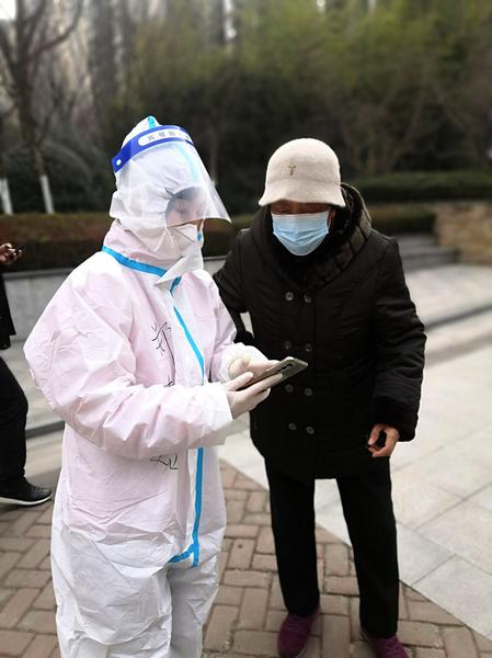 当天,早9点左右我前往社区报到,社区给每个志愿者发放一个N95口罩、一双橡胶手套、一件红色志愿者马甲,我穿戴好防护装备,第一次志愿工作就这样开始了。早上,我被安排参加社区核酸活动中,主要负责现场秩序维持工作。下午接到社区工作安排,前往小区2号楼两个单元“扫楼”检查当天核酸检测遗漏人员。