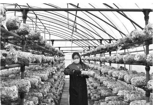 闫军彦口中的“两借一送一还”,是指群众通过村集体经济合作社租借“香菇大棚”和“香菇菌棒”,由村集体经济合作社出面协调企业全程免费提供技术指导服务,等到群众承包的香菇大棚正常出菇时再向合作社返还与租金等价的香菇,这一举解决了“群众想干、口袋没钱”的窘境。
