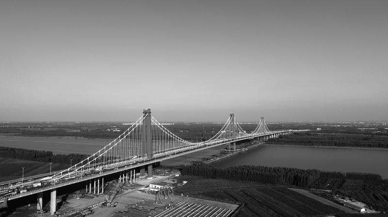 济南凤凰黄河大桥全长3788米,是济南凤凰路北延之后的跨越黄河通道,也是世界上最大跨度、最大宽度的三塔自锚式悬索桥。“中铁宝桥承担了三座钢塔、主桥、水中引桥、北岸跨堤引桥钢箱梁等四个项目建设任务,钢结构工程总量7.14万吨,相当于近10座埃菲尔铁塔的总重量。工程总量之大,制造标准之高,建设难度之大,施工任务之重,工期目标之紧,在我们公司参建的桥梁中实属罕见”,中铁宝桥工程公司华北区域工程指挥部指挥长张晓伟表示。