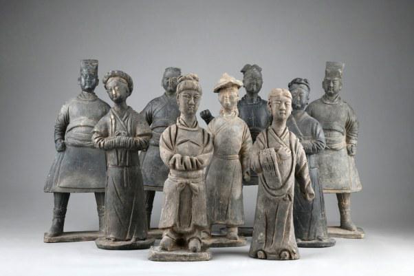 出土的各种类型的、神态生动的男女侍俑。