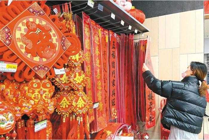 图为市民在南稍门一家超市挑选春联。郝钟毓 摄