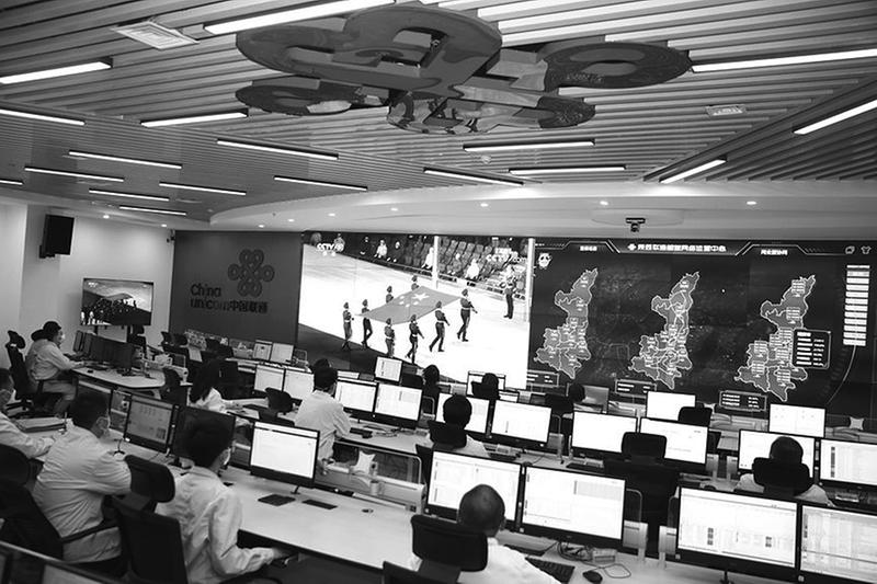 在中国联通西北大区指挥调度中心,陕西联通冬奥会通信保障小组成员紧盯大屏,实时监测并记录网络安全运行情况。实际上,除了要及时有效处置陕西省内网络突发情况外,该指挥调度中心还肩负着甘、宁、青、新西北四省集约化网络的通信保障任务,责任重大、不容有失。