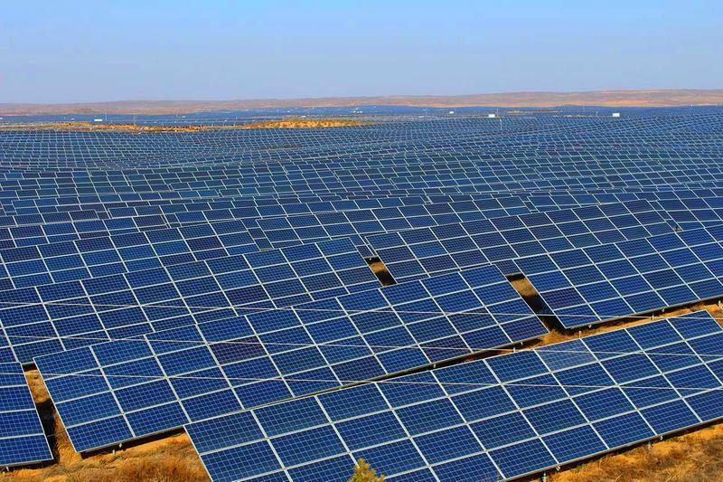 走进神木市锦界镇光伏发电园区,一排排晶硅板整齐地排列着,在阳光的照射下熠熠生辉,将太阳光源源不断地转化成电能。神木市锦界光伏产业园总占地约1万亩,总装机容量达300兆瓦,已完成固定资产投资约27亿元。“目前,光伏园区平均每天可发电115万度,每年发电量可达4.2亿度。”神木市晶元控股集团新能源事业部总经理刘欣说。